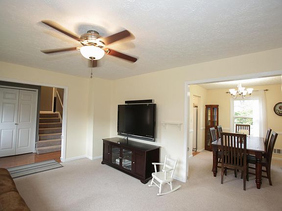 Brick four bedroom and two bath home on quiet court off Hunsinger Lane. You will enter into a generous living room with dining room and eat-in kitchen also on first level. Kitchen features plank-style flooring, white cabinetry and tile countertop. Three bedrooms and full bath are located on second level. Walkout lower level is where you will find the family room, fourth bedroom (currently used as office) and second full bath. Family room is tiled and has built-ins on each side of a brick fireplace. 2515 Wyeth Court has also been updated with replacement AC and furnace (2013 per owner), double-paned low e-argon windows and many brushed nickel fixtures throughout. Garage has two doors and lots of storage along with laundry. A lot of house for the money.