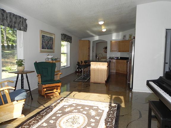 Check out these amenities...- Pretty manufactured home on ~1 acre.- Vaulted ceilings throughout. - Large kitchen with breakfast bar, stainless steel appliances, pantry & dishwasher. - Living room and family room! - Private master suit with two walk-in closets, soaking tub & separate shower. - Utility room with built-ins. - Forced air heat with a/c. - Goat barn & detached 2-car garage. - Plenty of room for RV parking.- Solid slab foundation.