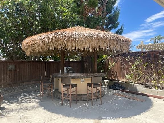 This is an amazing five- bedroom bright and open floorplan home in Laguna Hills with crown molding, recessed lighting and upgraded baseboards throughout. No detail has been spared! Soaring ceilings in living room, travertine floors, beautiful fireplace, and a formal dining room. Kitchen has granite countertops, glass tile backsplash, white cabinets and stainless steal appliances. There is a built in entertainment center with in-ceiling surround sound speakers, and a second stone fireplace in family room with sliding doors to the inviting backyard. Master bedroom has a stone fireplace, Plantation shutters, dual closets and an en-suite bathroom featuring a granite-topped vanity with dual sinks, soaking tub and walk-in shower. Two secondary bedrooms share a jack and Jill full bathroom with dual sinks, and two additional bedrooms share an adjacent full bathroom. There is a laundry room with utility sink on the first floor. Three car garage with epoxy floors offers plenty of room for storage. Backyard is an entertainer's delight with sparkling salt water pool and spa , and BBQ island.