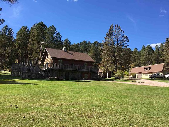 Park like acreage of 15+ acres, surrounded by National Forest & State Park with trees, rock formations, hiking areas and views of the Black Hills from the west end. Pine Beetle issues are addressed. Offering includes 3 bedroom, 2 bath single family home that could be duplex, detached 2 car garage with private entrance to 2 bedroom apartment and private entrance to upper bunk house/office/game room. The property has been used as a vacation rental, part time home, income producing and a single family residence. Clean, well maintained, high quality fixtures, floor coverings and newer kitchen. Cedar siding, slate rock work, metal roofs, Trex decking with two outdoor entertaining areas. Income from garage apt $9000 year. Income from lower level duplex $ 3900 year. This offering has curb appeal, is loaded with TLC, well maintained and worth a look in the Custer area.