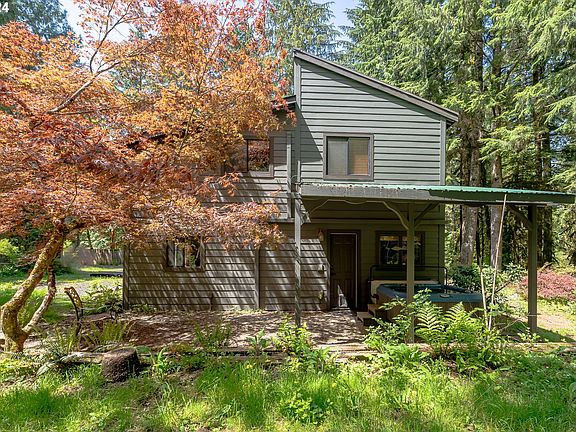 Stunning forest views in a secluded setting surround this 4 bedroom/2 bath home on over a half acre in a gated community. Sounds of the Salmon River from the two covered patios, one with Jacuzzi-brand hot tub. Knotty pine tongue in grove interior finishings and freshly painted fiber cement exterior siding. Indoor cedar sauna downstairs and deep soaking tub in primary bath underneath skylights with views of the forest canopy. The private primary suite includes a large closet, a dressing area, and an additional bedroom/office with ample storage. Mature landscaping, with Japanese maples, rhododendrons, wildflowers, and a huge fire pit with log round seating. Three outdoor structures include a shop with an attached two-car carport and wood storage, a multi-room shed, and a covered multipurpose hardwood outdoor living area previously used as a stage. Community well, new engineered hardwood flooring, whole home water filtration system, stainless steel appliances, and new mini-split HVAC throughout. Minutes to restaurants, shopping, golf, hiking/biking trails - this hideaway is adjacent to protected forest and all the amenities Mt. Hood offers!