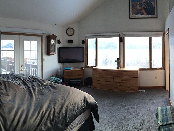 Spectacular Views of Mountains and Eagle River. Huge family room with bonus room and wood stove. Open dining/living room, Spacious master bedroom with private bath and walk in closet. Oversized two car garage, storage shed and a detached inclosed carport with shop attached and room above. A Must See.