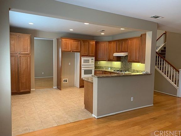 This approx. 2699 square foot home has 4 Bedrooms - 3 Baths is ready for move-in and is located on a flat street in Stevenson Ranch. Formal Dining room and Living room. Family room off the kitchen with a fireplace. Upstairs master suite features a retreat. Kitchen has a breakfast room. This home features a 3 car tantum garage with direct access and leads into a downstairs laundry room. Upgraded flooring downstairs and carpeting upstairs. Back yard is very pleasant and allows for outdoor entertainment.