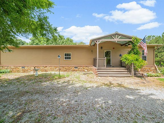Lovely home on a hill overlooking 22 acres (more available) with trees, a shared pond, and a creek. Large kitchen open floor plan. The home began as a mobile but was rebuilt as a stick-built house. The home has a crawl space and a slab foundation. Includes a carport, barn, storage buildings, and more! Additional land-see MLS2320569.