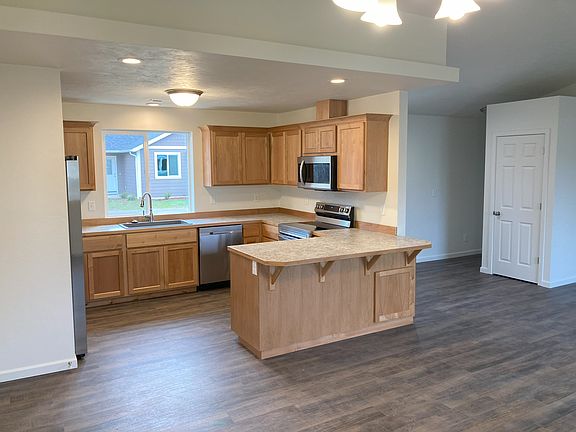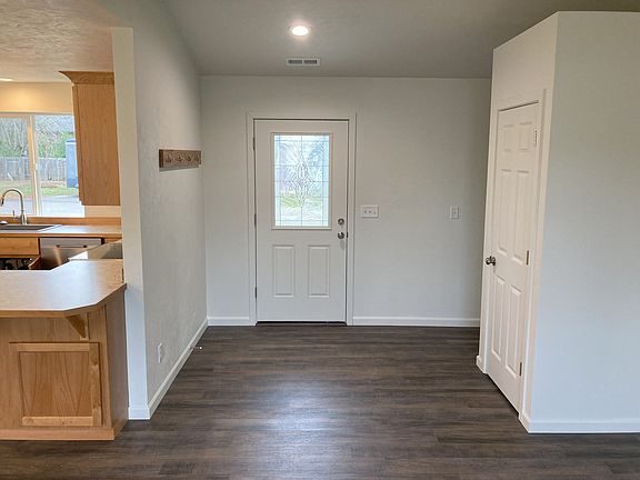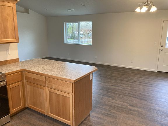 3Br/2Ba 1309 sq ft. Carpet in bedrooms and LVP in rest of house. Appliances: fridge, stove, dishwasher, microwave over stove. W/D hookups inside the house but you need to provide your own washer and dryer. Walk-in closet in master BR. Attached garage with automatic door opener. Heat pump for efficient heating and AC. Tenant is responsible for yard maintenance, utilities, garbage. Single pet considered, but yard is not fenced. Deposits include first month and 2200 refundable security 500 pet deposit. Feel free to drive by, but please do not disturb current tenants. Month-to-month lease. Tenant responsible for all utilities. Yard maintenance negotiable.