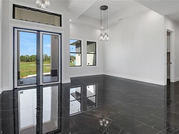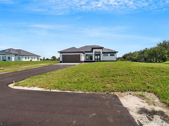 Discover this beautiful brand-new home situated on over 2.7 acres of cleared land, offering more than 2,200 sq. ft. of luxurious living space. This home features 3 generously sized bedrooms and 3 full baths, plus a versatile flex space that can serve as a recreation room, home office, or media room, complete with a closet, private bath, and wet bar. Inside, you'll find stylish tile flooring throughout, impact-resistant windows and doors, a waterfall kitchen island, and an upgraded appliance package. The lanai, equipped with a wet bar, is perfect for enjoying your morning coffee or evening cocktail while overlooking the landscaped yard. Entertaining is effortless with the chef's kitchen that opens to a large great room featuring sliding doors to the lanai. Guests can relax at the kitchen island and chat while meals are prepared. The café dining area is ideal for casual get-togethers, while the formal dining room is perfect for holidays and special occasions. The primary bedroom suite offers a spacious walk-in closet, dual sinks, a walk-in shower, and a private water closet. Additional upgrades include decorative wood trim around the windows, ceiling fans, lighting fixtures, and a whole-house reverse osmosis system. The 2-car garage provides ample storage space. This home exemplifies comfort, style, and quality living.