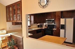 Wonderful 4-level split home in a convenient, quiet NW location. Huge backyard has a storage shed, high-quality deck, fence and mature trees for privacy. Flat landscape for easy lawn mowing. Nice sized kitchen open to dining room, built-in sitting area, ceramic tile, and new cabinet hardware. Dinette is tiled, has room for bar stools and access to deck. See supplement.