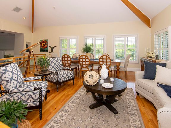 - RoomLivingRoomFeatures: Dec Molding, Two Story, Ceilings - Beamed, Raised