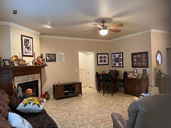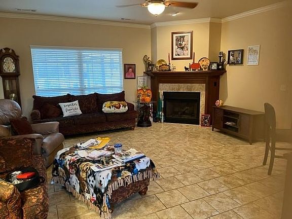 One owner home, lovingly cared for. All rooms generously sized, including large living room and large primary bedroom. All 3 bedrooms have walk-in closets, primary bedroom has several built-in storage areas. Primary bathroom has an inviting jetted soaker tub, separate roomy shower, vanity with 2 sinks. Ceiling to floor storage cabinets in both halls. Kitchen has a pantry + a broom closet with storage + a large work island with seating space. The 5 chairs can stay. 2 ovens to make holiday cooking a 'lesser stresser' occasion! Peaceful back yard with white vinyl fencing; patio is partially covered and partially open to healthy sunlight! Carpet in SE bedroom, primary bedroom and primary closet is less than 6 months old. Wonderful built in storage cabinets in the garage. Guttering has leaf guards.