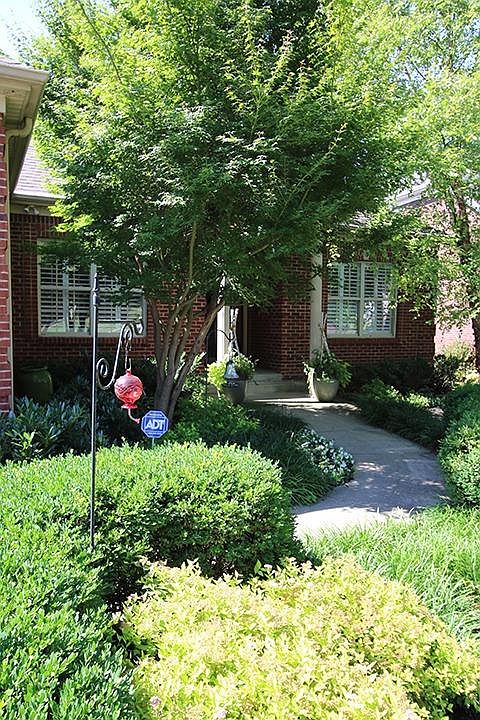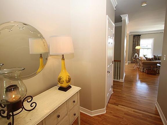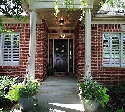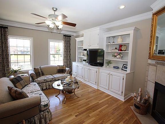 Lovely ranch with finished walk-out basement, and attached garage. Add to this beautiful home a soothing view of adjoining lake from interior, deck or patio. Classic brick front w/design highlights & covered front porch. First level has hardwood floors, except tile in the kitchen & baths, 9 ft. ceilings & crown molding. Great room has custom built-in entertainment center & gas log FP open to dining room/area. Kitchen features granite countertops, gas cooktop, work/prep island, bay window dining space with view of lake. Plantation shutters in 1st floor bedrooms, tray ceiling in Master bedroom. New hardwood-look & practical vinyl floor in lower level, except tile in baths, utility & storage/bonus room. A 2nd built-in entertainment center graces family room with bay window view of lake. Lower level bonus areas offer several possibilities, for exercise, work or hobby space. Long driveway provides more room for guest parking. 1 year HMS home warranty to buyer at closing.