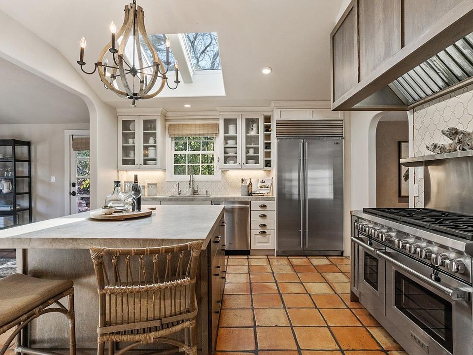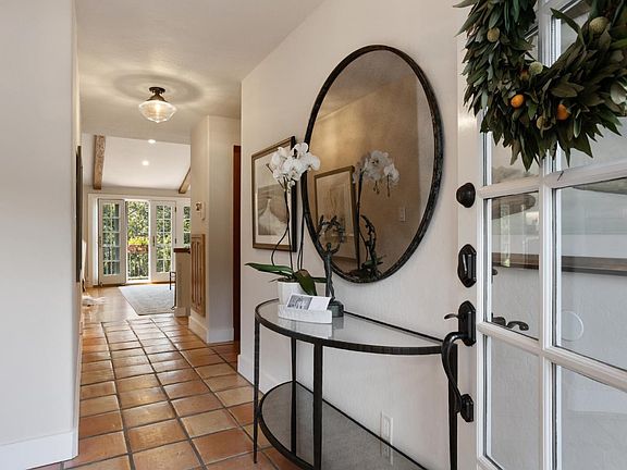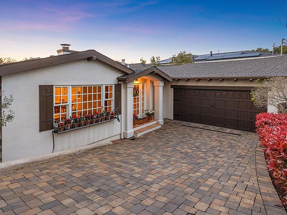 Nestled in the rural hills of the Belmont Country Club neighborhood, this remodeled Santa Barbara-style residence has simple lines, lofty ceilings with exposed beams, generous windows and French doors, Saltillo tile floors, wrought iron works and seamless transitions to outdoor gardens and living spaces. Spanning two levels, the 2705+/- sf layout has 4BDs and 3BAs, including the primary suite with a private, romantic balcony. From the skylit, chef-caliber kitchen with Wolf range, Sub-Zero, center island and open dining area, to the expansive great room with towering ceiling, hardwood floor, built-in speakers, contemporary fireplace and tiled balcony extending the length of the room, this home was designed for entertaining. The lower level offers a BD and BA, an office, a large service room with beverage fridges, and a huge, fully equipped media room with French doors to the backyard patio and grounds with a stucco fireplace and lounge area, dining patio, play area and secret garden.