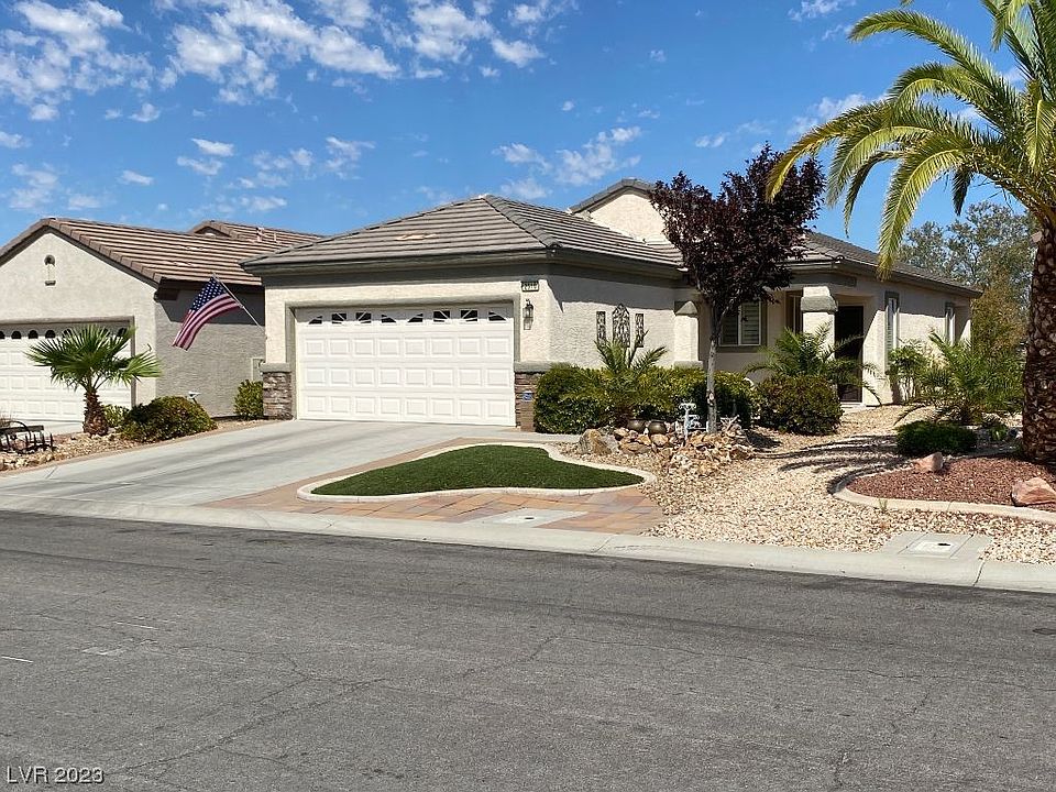 Welcome to your new home, located in the Solera at Anthem age 55+ community in Henderson. This Lewis model has 2 bedrooms, 2 bath with a kitchen that includes a pantry and a dining area that overlooks the living room to give you that spacious open plan feeling. All of the appliances (kitchen and washer/dryer) convey with the home including a water filtration system. Primary bedroom has a large walk-in-closet, shower and two sinks. Covered patio is easy to get to from the living room through the sliding glass door. Lots of storage in the garage (cabinets/shelving units). Easy access to the house from the garage straight into the kitchen. New HVAC installed in 2022, water heater in 2021. The clubhouse provides you the opportunity to meet new friends through recreational and social activities.