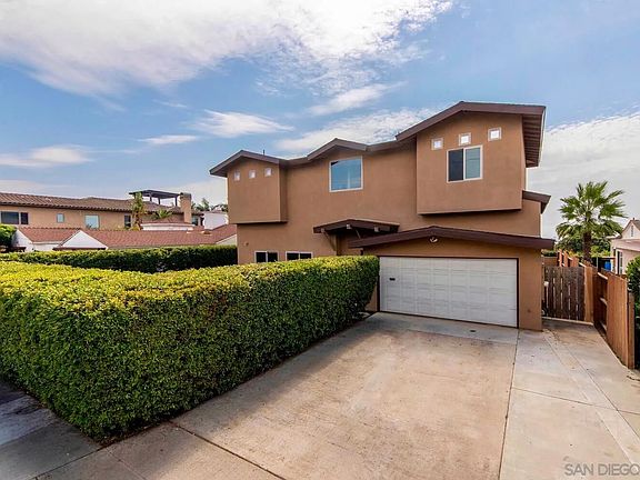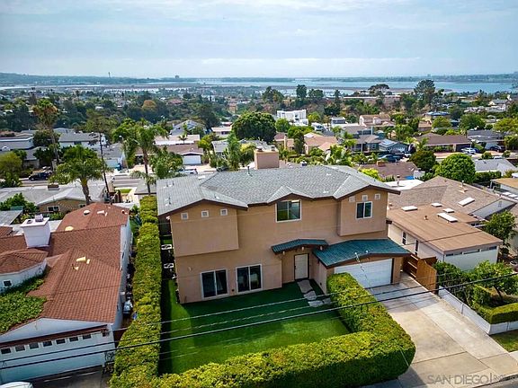 Located at the apex of the hill in coveted Bay Park, this stunning home boasts panoramic bay & ocean views. Enjoy sunsets, fireworks, ocean breezes, & close proximity to Mission Bay. This 2,922 sq. ft., 4 bed, 4 bath upgraded home was extensively remodeled w/ a large second story addition & spacious view deck in 2010. The living room features a vaulted wood ceiling, wood burning brick fireplace, & has an entire wall of glass w/ large sliding doors maximizing the view & showcasing indoor/outdoor living at its finest. The generously sized family room features a soaring vaulted ceiling & double sliding doors that open to the large turf front yard. There is a primary suite upstairs as well as one downstairs. Both feature panoramic views. The oversized upstairs primary suite features a view deck, wood burning fireplace, & spa inspired en-suite. The fully fenced backyard features a covered patio, turf lawn, & wrap around bar. Upgrades include Brazilian cherry wood flooring, dual zone central heat and A/C, remodeled bathrooms w/ jetted tubs & marble tile, upgraded plumbing, solid wood doors, recessed lighting, newer paint & trim, whole house water purification system, reverse osmosis water filtration, tankless water heater, & outdoor bar area plumbed for gas. There is also a 2 car garage w/ large driveway to accommodate RV parking. Enjoy close proximity to freeway access, Tecolote Canyon & Golf Course, San Diego Tennis & Racquet Club, highly rated Bay Park Elementary, walkability to restaurants, yoga, Western Hills Park, and the luxury of living close to Mission Bay.