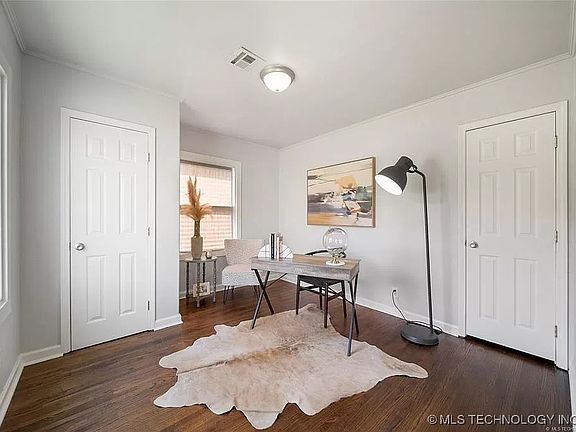 Four bedrooms with an office that could be a 5th bedroom, 2 full baths, beautiful hardwood floors throughout, living room has large picture window that brings in natural light, huge fully fenced backyard. Close to Tulsa University, shopping, restaurants and major highways.