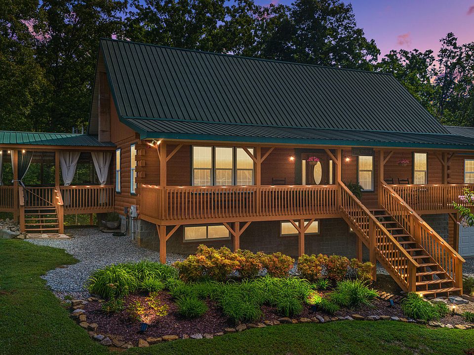True log cabinFinished walk-out basementThree fireplacesMultiple porchesLarge islandOversized main-level master suiteBrand-new above-ground pool