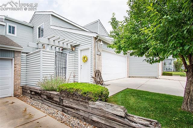 Beautiful two story townhouse located in the desirable Courtside community. This townhome offers a two car garage, two bedrooms, 3 bathrooms, a walkout deck, a walkout patio, wood burning fireplace and backs to open space. Upon entry you are greeted by warm hardwood floors. The living room offers an ample amount of space and continues into the eat in kitchen that also includes a breakfast bar and a walkout to your back deck that has tremendous views. Access to the laundry unit and the half bath is conveniently located on the main level. Upstairs you will find the master bedroom that includes an adjoining bathroom, a large walk in closet and Mountain Views. The secondary bedroom includes a walkout to the back deck, plenty of closet space and a 3/4 bathroom. Enjoy vaulted ceilings in the living room, a wood burning fireplace and plenty of storage in the crawl space. This home is minutes away from the Chapel Hills Mall, the Air Force Academy and is part of the award winning district 20 school system.