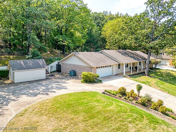 Tastefully updated one level home with 3 bedrooms, 3 bathrooms, multiple living areas, large kitchen, formal dining, and generous laundry room with sink. This home showcases a gorgeous chefs kitchen offering a large island, luxury appliances, custom soft-close cabinetry, under cabinet lighting, granite countertops and is open to multiple living areas that include a fireplace, a wall of windows for an abundance of natural light and direct access to the backyard oasis. The private backyard oasis is complete with an in-ground swimming pool, a grill station, and landscaped to perfection. The spacious primary bedroom has access to the patio/pool area, a walk-in closet and walk-in shower. New water heater, a 2-car garage, a circle driveway with additional parking space, a storage building, a walk-in storm shelter, and a beautiful, stamped concrete covered front porch to relax on. Close to schools and shopping.