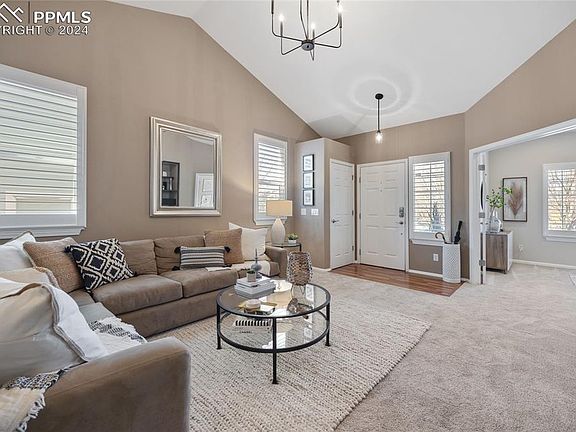 This three bedroom, two bathroom 1,295 square foot ranch-style home has been recently updated for modern living. The primary bedroom features an en-suite bath and a walk-in closet. Two additional bedrooms and a fully updated secondary bathroom offer ample space and style with granite countertops. The recently renovated kitchen features granite countertops, stainless steel appliances, wood laminate flooring, a pantry and a new sliding Anderson door with backyard access plus abundant natural light. The living room offers a gas fireplace and vaulted ceilings. Notable features include custom plantation shutters, new carpets and professional landscaping with mature trees. Outside, enjoy a custom patio, paved walkway to the backyard and a stained privacy fence. Convenience is key with central air conditioning, a newer water heater, upgraded lighting fixtures, abundant natural lighting and new smoke detectors. Nestled in a quiet neighborhood, this home offers easy access to retail shops, restaurants and military bases. Don't miss the opportunity to experience the epitome of Colorado Springs living at The Range at Springs Ranch.
