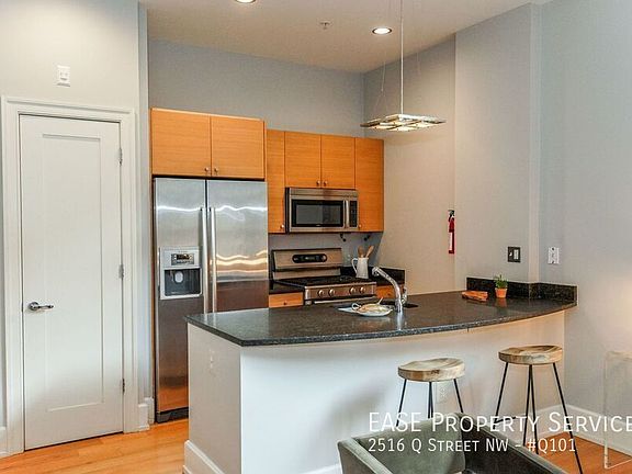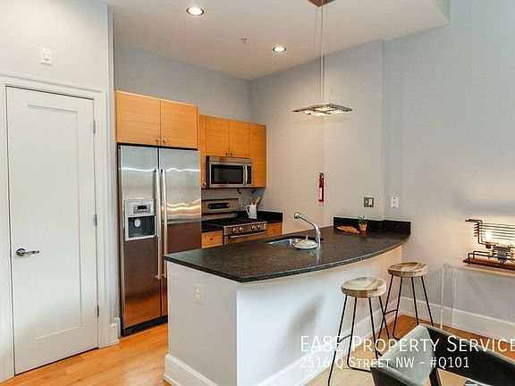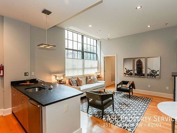Welcome to Sheridan Garage. This historic building began its life as a garage in the 1920s before being converted to a high-end condominium complex in 2008. Unit #Q101 is a stunning one-bedroom unit that has soaring ceilings, oversized windows, plus a garage parking space included in rent. Welcome home! Apartment Features: Front desk concierege Monday through Friday Open floorplan with tons of natural light Soaring ceilings and oversized windows highlight the main living area Beautiful hardwood floors throughout living area Gas fireplace in living room Beautiful kitchen with granite countertops, stainless steel appliances and bar seating Spacious bedroom with a good amount of closet space Stylish bathroom with tub/shower Washer/Dryer in unit Additional storage cage in garage included - perfect for your suitcases and extra belongings! Parking: One private, garage parking spot included in the rental amount. Utilities: Tenant is responsible for electricity. Water and gas are included in rent. Lease Terms: Available April 5. Minimum 12 month lease. Application fee is $35 and includes a credit check. Tenant is responsible for $250 building move-in/move-out fee. Security deposit equal to one month's rent due upon lease signing. Sorry, no pets. Location: Sheridan Garage is located on Q Street in Georgetown's East Village between 26th Street and the Rock Creek Parkway in Georgetown. This location offers convenient walking access to the multitude of dining, shopping and entertainment options in both Georgetown and Dupont Circle. The Dupont Circle Metro Station on the Red Line is just a short walk over the Dumbarton Bridge and down Q Street from Sheridan Garage.