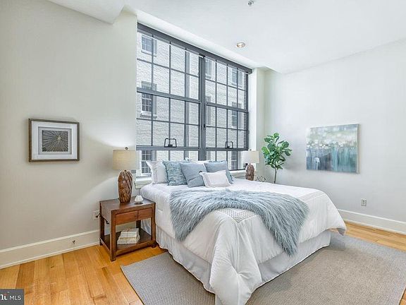 Corner residence at Sheridan Garage with large casement windows, soaring ceilings and an open floor plan. Features include hardwood floors, premium kitchen and bathroom fixtures, a gas fireplace, and a private patio with exterior access. Short walk to both Dupont Circle and Georgetown's M Street.
