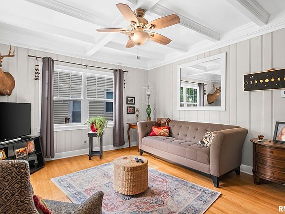 Don't miss this beautifully updated home! From the moment you enter, you'll be captivated by the elegant coffered ceiling and paneled walls in the living room. Gleaming hardwood floors run throughout most rooms, complementing the all-new kitchen with modern finishes. Major updates include a replaced roof, energy-efficient vinyl windows, and a large new water heater. The exterior features newer durable vinyl siding with house wrap and insulated walls for year-round comfort. Enjoy the convenience of an extra full bath in the finished basement and a spacious garage with an oversized storage area. This home combines charm, efficiency, and functionality- come see it today!