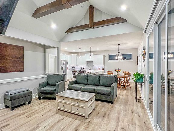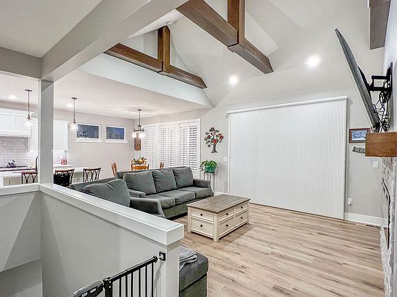 MOTIVATED SELLER!!! Offering $3k towards closing costs or down payment! This beautiful home built in 2022 in the Clear Ridge subdivision features 5 bedrooms and 3 bathrooms! You will walk into a beautiful open floor plan with large patio door windows that bring in lots of natural light! Living room features high vaulted ceilings with modern finishes along with LVP flooring and an electric fireplace. Owners had easy to use plantation shutters installed throughout the house. The kitchen features a large island, granite counters, custom built range hood, and walk in pantry. The master suite offers a large walk in closet and a large tile shower. The basement features a large rec room or a game room with wet bar big enough to hold a full refrigerator, 2 bedrooms, and a full bathroom. You will definitely not miss the large fenced in backyard with a large covered patio to watch the sunrise! The garage is an oversized garage that can easily hold three vehicles, or be used for extra space for a workshop! The exterior includes landscaping, privacy fence, sprinkler system, and well. Special amenities include oversized garage, landscaping, walk in pantry, privacy fence, under counter kitchen lighting, and wet bar on lower level. Don't miss out today!