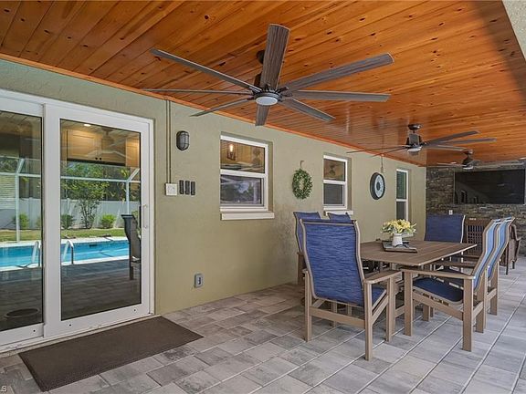 TOTALLY RENOVATED SALTWATER POOL HOME WITH VIRTUALLY NEW EVERYTHING! NO HURRICANE IAN DAMAGE NOR FLOODING! NO FLOOD ZONE! NEWER ROOF, A/C SYSTEM, SPRAYED INSULATION, ELECTRICAL, PLUMBING, TILE FLOORING THROUGHOUT, EXTERIOR/INTERIOR PAINT, RESURFACED 15X30 POOL WITH BRICK PAVERS, TOTALLY FINISHED GARAGE W/MINI SPLIT AC, HURRICANE RATED DOOR AND EPOXY FLOORING, VINYL FENCING, BUTCHER BLOCK COUNTER IN LAUNDRY AREA, QUARTZ COUNTER TOPS IN KITCHEN, HURRICANE IMPACT WINDOWS AND DOORS, IRRIGATION SYSTEM (NEWER), KNOTTY PINE CEILING ON LANAI WITH ACCENT WALL, LED LIGHTING THROUGHOUT, BRAND NEW POOL HEATER, HARDY BOARD SOFFITT, EXTRA PAVED REAR AREA FOR LARGE BOAT OR TRAILER PARKING WITH SHED TO STORE ALL YOUR TACKLE, LANDSCAPE WITH CURBING, JUST TO NAME A FEW! THIS HOME WAS TAKEN DOWN TO THE STUDS (NOT BECAUSE WE HAD TO BUT BECAUSE WE WANTED TO) AND REMODELED AND RENOVATED. CROWN MOLDING! WOOD TRIM AROUND WINDOWS AND DOORS WITH 6" BASEBOARDS! FARM DOORS TO OWNER'S BEDROOM AND BATH! WALK-IN CLOSET WITH ORGANIZER! 10' X 33' SPACIOUS LANAI AREA THAT WAS REBUILT AND PERFECT FOR ENTERTAINING! VERY PRIVATE REAR SETTING THAT EVEN THE BIRDS ENJOY! OWNER/AGENT