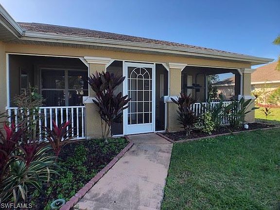 Kick your feet up and enjoy the tropical scenery that this home has in store for you. As you walk in, you will notice the wonderful lighting that this home gets with having Southern Exposure. This house has been well maintained. New A/C, water heater, and automatic sprinkler system. The house is tiled throughout the interior, the lanai, and front porch. The front porch has been screened in gives you another great area to sit down and relax. Furniture is negotiable. This home is just minutes away from the Burnt Store Boat Ramp, restaurants, parks, and shopping plazas. This home is priced to sell and ready for you to move right in!