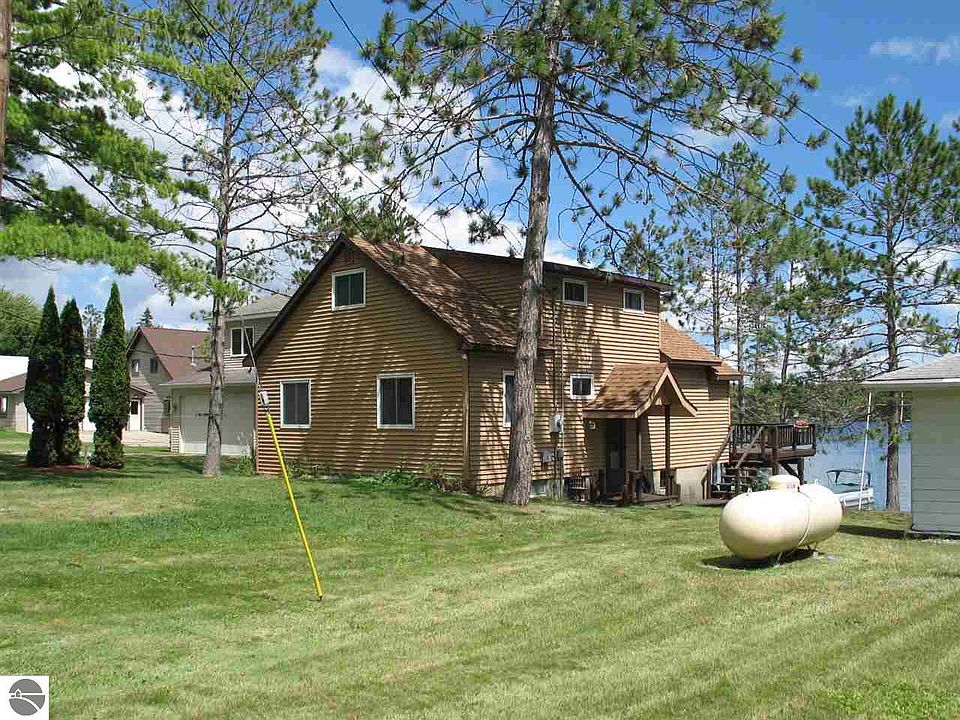 Nice 3 bedroom waterfront home / cottage on all sports Rifle Lake . Walkout basement has 3/4 bath and laundry plus plenty of extra storage space . Kitchen and living room are on the main level with nice view of the lake . Nice deep lot so your not setting right on the highway .