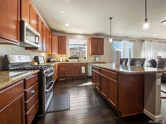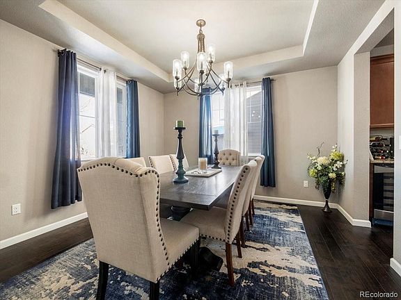 *PRICE IMPROVEMENT* Don't Miss out on this opportunity Nestled in the heart of Castle Rock. This exquisite home is less than 10 minutes to downtown Castle Rock. There are wonderful variety of restaurants & shopping within walking distance to Festival Park–great place for summer concerts! The neighborhood of Terrain is quiet & quaint. This beautiful home sits on a cul-de-sac street. The thoughtfully home is designed to utilize natural light creating a warm & inviting atmosphere throughout. You will notice a combination of engineered hardwood floors, plush carpeting & be captivated by the stunning formal dining room w/ coffered ceiling. The beautiful kitchen offers granite countertops, large island w/ breakfast bar, GE stainless steel appliances, a beverage refrigerator (included), large walk-in pantry & lots of cabinets & counter space. Large windows are strategically placed to distribute light evenly, illuminating the open concept space, creating a seamless transition from room to room. The living room is an architectural masterpiece, providing a sophisticated elegant backdrop for entertaining guests or spending time w/ loved ones, featuring a gas fireplace, perfect for those cool spring evenings, open to the kitchen. The home also comes w/ beautiful blinds & window treatments. The basement features a large open concept space, perfect for a bonus room or recreation space, also includes rough-in plumbing for the extra living space you have been dreaming of! The beautiful aesthetics of the home continues outside, creating a serene and peaceful atmosphere. The spacious backyard is an outdoor oasis, complete with low maintenance astroturf, a firepit, a Jacuzzi (included) & plenty of room to relax & unwind. This home is the perfect blend of luxury and functionality, providing a stylish & comfortable living space that you will be proud to call your own. Don't miss out on the opportunity to make this breathtaking Castle Rock property yours today!
