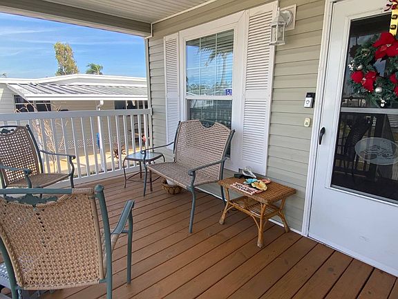 Bring your family & friends to this open concept living/dining/kitchen and outdoor space. This 3 bedroom, 2 bathrooms, has a split bedroom floor plan. Offers ample kitchen cabinet storage & pantry, SS appliances and oversized kitchen island. Vaulted ceilings & crown molding in every room, sliding door from dining room to 14x25 lanai w/ double doors for golf cart storage, primary bedroom with walk-in closet & views of the pond, primary bathroom has double sinks & walk-in shower, and an inside laundry room. Front covered composite 8x13 deck, 13x12 storage room with electric and a 14x25 carport with extra parking for a car or golf cart. $716 per Month Lot Rent Includes: Spectrum Select TV Package with 2 Set Top Boxes, Internet at 400 mbps, Water/Sewer, and Garbage pickup twice weekly. A Land Lease Manufactured Home 55+ Community (239 Homes) Located On The Scenic Little Manatee River with Entrance to Tampa Bay and the Gulf of Mexico. 30 Minutes South of Tampa off US 41. It is rural but it is minutes from shopping, beaches, and medical facilities. Come enjoy our quiet, active, and owner-occupied community (renting homes is not allowed). Our community has many amenities, including, but not limited to our beautiful Heated Pool, Shuffleboard Courts, Horseshoe Pits, Fire Ring, Bocce Ball, Pickle Ball, Tiki Hut, Clubhouse with Screen Room, Commercial Kitchen, Stage, Recreation Hall, Laundry, Memorial Bridge, 3 Ponds, Private Fishing Pier, Boat Ramp, Fish Cleaning Station, and 30 Boat Slips. Pet Friendly with Off-Leash Dog Park. Small Dogs and/or Cats Maximum 25 Pounds and 16" at Shoulder at adulthood-Limit of 2 Pets. Secured Storage, Unsecured Storage & Boat Slips are Available for Residents to Rent. All prospective buyers must come to the office prior to purchasing a home for a background and credit check. Contact Chulavista Landings Office for more information.