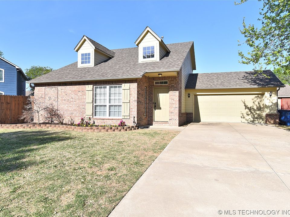 Newer construction in golf course community in Jenks Northwest Schools! This home features granite counters, stamped and stained designer concrete floors, a kitchen island with bar seating, and brand new stainless steel appliances! New roof 2018. Great room with vaulted ceilings and fireplace open to kitchen and breakfast nook, excellent entertainer floor plan. Primary suite down with luxury bathroom, double sinks, whirlpool tub, and a oversized walk in closet. Half bath and separate laundry room down. 2 beds and full bath up. Low maintenance yard with updated privacy fencing. Home located on Cul De Sac type circle. Vinyl windows. Vivint security system installed. Well kept and move in ready! Easy access to 75, Tpk, 44, and Tulsa Hills! Convenience abounds in this established neighborhood. Seeing is believing, Come check it out today!