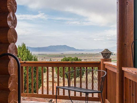 Amazing log home on nearly 5 acres. This 4 bed 3 bath home is a must see. The wrap around deck shows the beauty of Southern Utah with views from mountain range to mountain range and everything in between. The wood burning stove adds an extra cozy feel, and the log construction completes the package. House comes furnished, private well, electricity, propane (back-up propane generator also).
