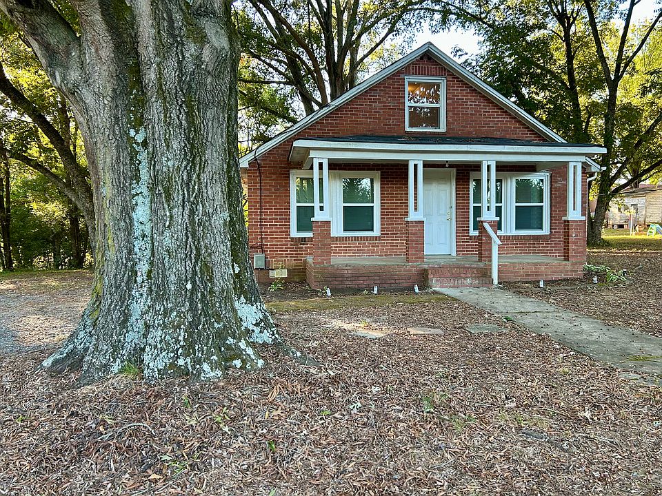 1.5 story 2 bed 1 bath brick home settled under mature oak trees. Nice yard, Full basement. Stove & fridge provided. 8x10 storage building in back.