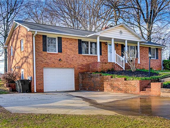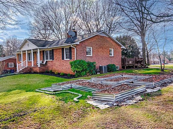 If you are looking for a brick ranch in a quiet neighborhood with a large flat yard, basement, and open concept you should take a look at this charming home. The homeowners have recently painted and put in laminate flooring in most of the home. Original hardwoods are in the living room, bedrooms, and hall. A favorite feature is that there are so many living spaces with a sunroom, den, living room, and finished basement as well as a formal dining room. The sunroom looks over the large yard w/ mature trees and deck. If gardening is your passion there are numerous raised flower beds. There is access to the backyard from the street behind the house. This would be great for parking an RV, camper or building a large storage unit. Endless possibilities with this property. Tons of basement storage & 1 car garage. The location to Hanes Mall, popular restaurants, coffee, and I-40 is a huge plus. Large tv in the basement and the refrigerator convey.