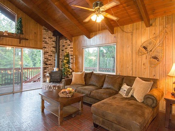 TRUE RUSTIC CHARM! Square footage does not include bonus room downstairs with full bathroom and laundry area - don't miss. Open beam ceilings with floor to ceiling windows inviting the outdoors inside. 2 bedrooms on main floor with full bath PLUS loft accessed by ladder in 2nd bedroom... so much fun for the kids! Backs to open space and trails for long range hiking. Sierra Park is one of few gated communities featuring a private lake/beach area, BBQ area, playground, basketball court, community building, trails, and soaring pines and cedars throughout the park. Sierra Park Amenities: water, trash, snow removal - Water fee approx. $550. a year and annual Service District is approx. $725.