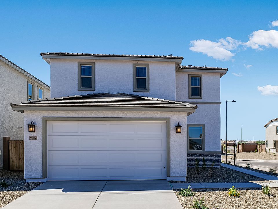 Welcome to the Arlington at 25161 N 165th Avenue in Asante! This two-story home offers 1,882 square feet of thoughtfully designed living space with 3 bedrooms, 2.5 bathrooms, a flex room, and a 2-car garage. The open-concept layout welcomes you with a spacious great room that flows effortlessly into the dining area and a stylish kitchen with an island—perfect for casual gatherings or cozy nights in. A flex room near the entry adds versatility, ideal for a home office, gym, or creative space. Upstairs, two secondary bedrooms share a full bath, while the private primary suite is a relaxing retreat featuring dual sinks, a walk-in shower, a private toilet room, and a large walk-in closet. Additional Highlights Include: Covered outdoor patio, 8' interior doors, garage service door, and outdoor living. Virtually staged photos are for representative purposes only. MLS#6856016