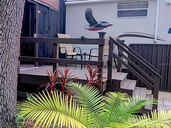 OWN your land in this majestic and welcoming RESORT Life community! Possible owner finance and ready for offers. Spacious corner lot with a border fence creating an aspect of privacy. The garden and scenery provides a serene atmosphere while inside the home. The unit is a nicely kept and clean JAYCO 5th wheel. A breezy hand built wood porch with all weather screen and protection has been added offering an additional space for relaxation and beauty. Ample parking on your private land for additional vehicles, golf cart, boat, or cycles. Hidden storage space as well! This resort is popular for its lavish swimming pools, ammenities, fishing dock and boating. Great opportunity to have full ownership in a resort with the option to be a full time resident, part-time or lease short terms.
