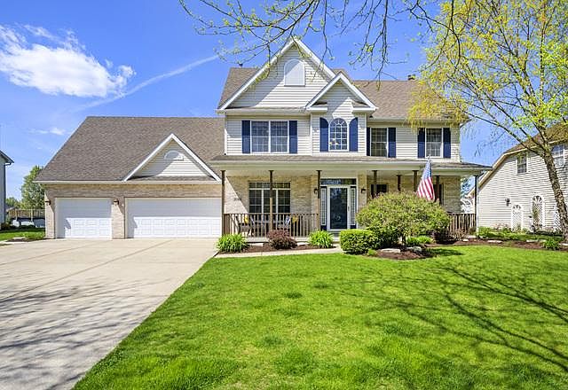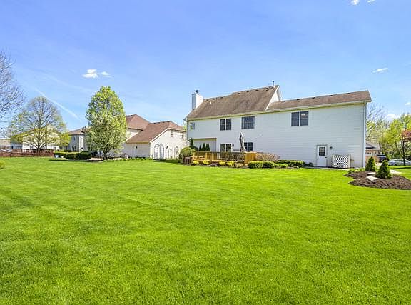 GORGEOUS 2 STORY SPRAWLING 3 CAR, NEAR 2700 SQ. FT. HOME IN THE POPULAR MEADOWLANDS OF CHANNAHON! One of the best lots in Channahon, almost half an acre with new landscaping, deck, limestone pathway, and 16x20 shed! Home greets you with large front porch that has been recently repainted! Newer flooring, bamboo hardwood and ceramic tile, thru-out main level! Grande family room features gas fireplace with ceramic logs, beautiful mantle, wired for speakers, and loads of natural lighting. Kitchen has been updated with custom antiqued white 42 inch 'furniture quality' cabinetry with crown moulding, butcher block counter tops, copper farm sink, and all SS appliances! Master suite features gorgeous new spa bath with ceramic walk in shower, new tile flooring, double bowl vintage vanity, soaking tub, blue-tooth enabled fixture to enjoy your favorite songs, double walk in closest, and tray veiling! 3 additional large bedrooms and loft! Bonus 'media room' off 3rd bedroom! Formal living and dining rooms off 2-story entry foyer. Unfinished basement has access to backyard, radon mitigation system, and bath rough-in! Water heater is nearly 2 years old and water softener only 6 months new! Home has been professionally landscaped. Walking distance to the Channahon Park district, Tomahawk Water Park, schools, parks, and more!Close to I-55