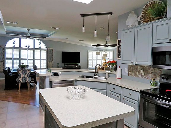 Absolutely lovely TWO bedroom TWO bath with a DEN/OFFICE with tile and laminate flooring throughout. The list of extras: Updated appliances, 2021 HVAC, 2022 ROOF, plantation shutters, screened front porch, big garage, fenced back yard and very nice painted driveway. FURNISHED. Even the garage has had a facelift! Replacement windows in 2022. Wait till you see the showers! And the mature, well maintained landscaping gives it great curb appeal. Located in beautiful Tanglewood, a very clean and active 55+ community.