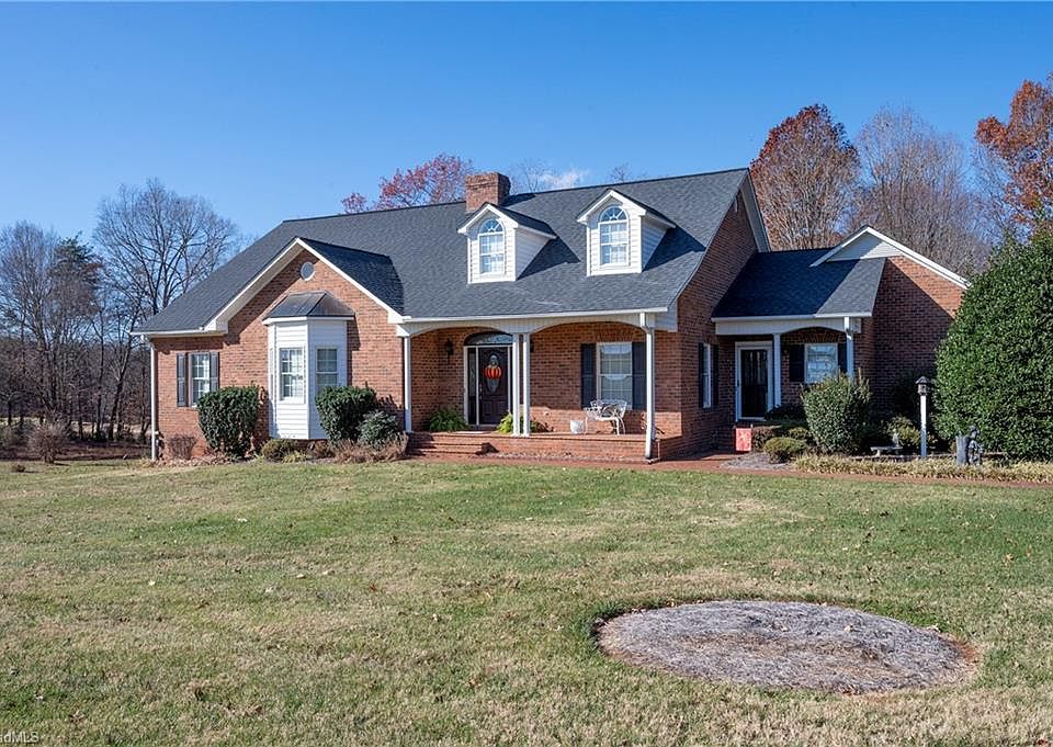 Stunning brick home with main level living overlooking the 18th hole at the Yadkin Country Club. Hardwood flooring throughout the living area. Gas logs, stone fireplace accents the living room. Nice sunroom with access to the new composite deck with a retractable SunSetter awning; both with great views of the golf course. Full unfinished basement with a full bath and wood burning fireplace; lots of opportunity for future finished living space, or storage area. Oversized 2-car side entry garage with personnel door entrance, storage closet, and walk-in attic access. Basement also has a 3rd car utility garage access. Two separate concrete driveways to make for plenty of parking space. Beautiful home in great condition. No HOA and low property taxes.