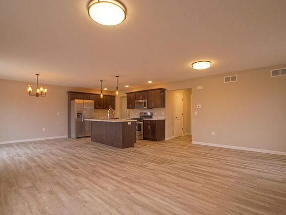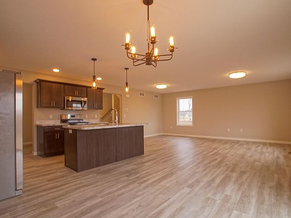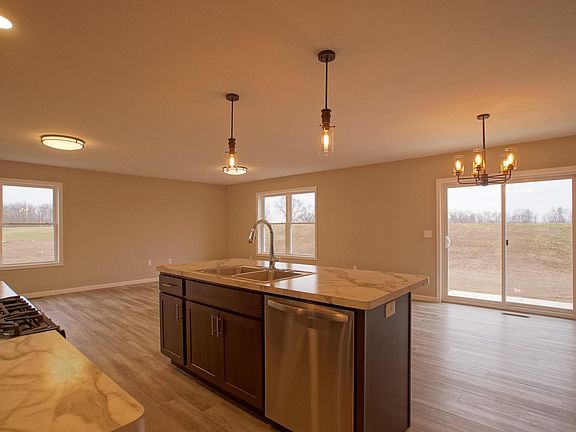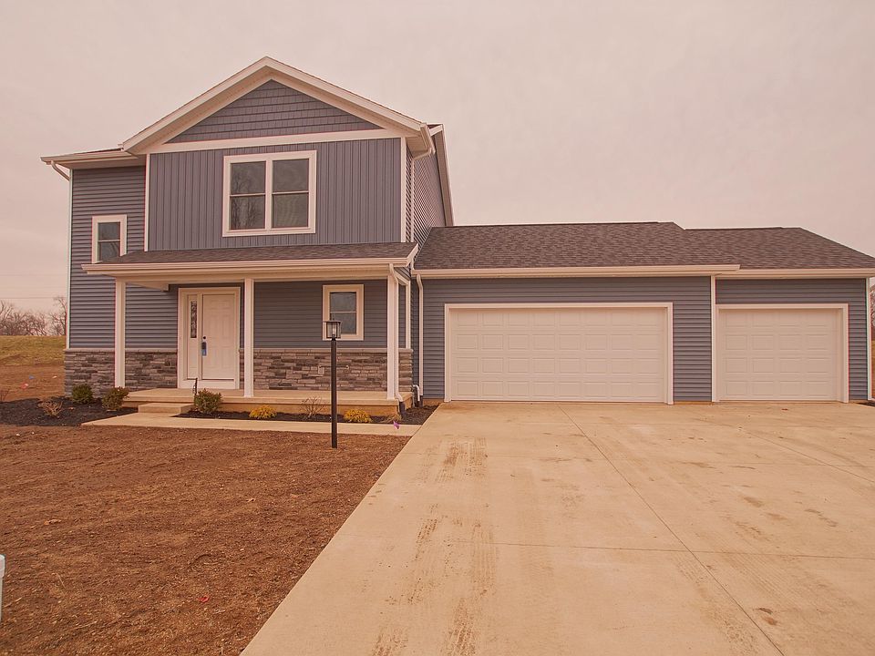 Just Completed - New construction - Quality built, 3 bedroom, 2 1/2 bathroom, 1607 sq. ft. family home with a full unfinished daylight basement set up for a future bedroom, full bathroom, family room and a mechanical/storage room. The attached 3 car garage gives you plenty of storage for your cars, bikes, mowers, etc. You will enter through a large covered front porch into the foyer that leads you past the basement stairway and a half bathroom then into the open floor plan design with the living room connected to the fully appointed kitchen with island and breakfast bar and pantry along with the dining room with a slider door leading out to the patio overlooking the back and side yards. The laundry/mudroom with utility sink connects the kitchen to the garage. Upstairs you'll find the master suite with a walk in closet, double sink vanity and a walk in shower. 2 generous sized additional bedrooms and a full bathroom complete level 2. Outside you'll find a maintenance free exterior with vinyl siding and stone accents on the front. This home sits on a .69 acre corner lot that will be seeded, and landscaped with a sprinkler system installed. REMC connect fiber internet is available for this home.