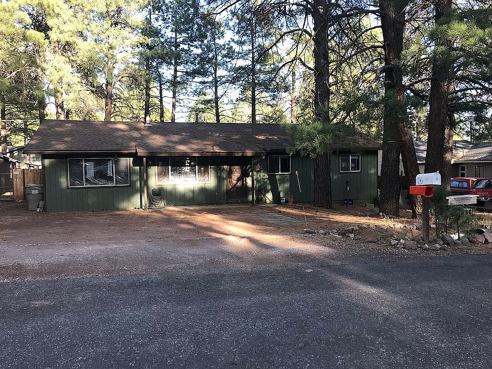 Ranch style, one level Open concept kitchen, living room. 3 bedrooms, 1 extra room for storage or crafts or bedroom. 1 bathroom, a laundry room and no garage. Large fenced yard. Located in kachina village, lovely country development that is 6 miles south of flagstaff.