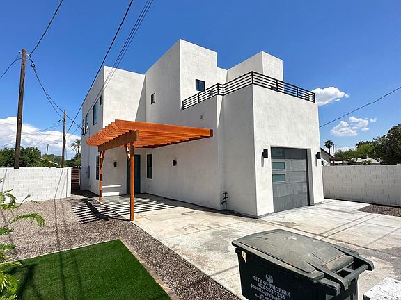 No HOA! Move in ready! You will feel at home as soon as you walk into this brand new 2 story home located in the desirable Downtown/Midtown Phoenix area. Exceptional in both design and amenities this home is ideal for families/professionals that want to be part of rapidly improving trendy community. This home features 4 bedrooms, 3 bathrooms, two front entrances, 10' ceilings, lots of natural light, gourmet kitchen, easy to maintain large back yard with turf grass and a huge balcony with awesome downtown and Camelback mountain views. By the right side entrance, there is a downstairs bedroom and a full bathroom completely separate from the rest of the home, perfect for an office or visitors. Fantastic kitchen with lots of cabinets, gorgeous of cabinets, gorgeous quartz counters w/waterfall oversized island, breakfast bar, farm style sink, large pantry, stainless steel appliances including a slide-in range with air fryer and convection oven, a 3 rack dishwasher, French door fridge and a 36" stainless steel hood. The open concept floor plan seamlessly flows into the dining area, kitchen and living room, making this home perfect for entertaining. Upstairs you'll find a large loft, laundry room with cabinets and sink, 2 spacious bedrooms and a bathroom with a tub. The large master bedroom has 2 walk-in closets with natural light, and a huge terrace. The en-suite bathroom boasts a gorgeous shower, dual sinks and a private toilet room. Luxury light fixtures and hardware. Recessed lights throughout. Fans in every room. Water softener loop. Tankless water heater. Premium Luxury Vinyl Flooring all through the house and tile in the bathrooms. Low-E windows & window coverings. Epoxy garage floor. Close to the freeway, hospitals, restaurants and shopping. You would feel like you're on staycation in this gorgeous home. We welcome FHA and VA buyers. Seller is willing to contribute towards buyers closing cost.