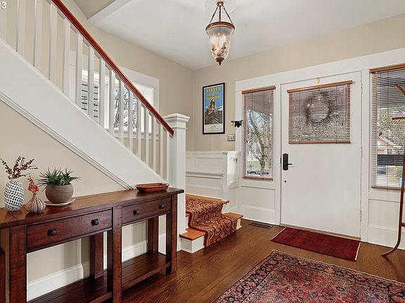 Stunning Four Square home in the heart of Irvington! This 1910 home features beautiful hardwood floors, built-ins, formal entry, living and dinning room. Chefs kitchen w/floating island, marble counters, pantry and Viking appliances. Primary bedroom features refinished hardwood floors, fireplace and remodeled bathroom w/heated floors. Large, finished basement with built-ins, storage, workshop, wine room and full bath w/marble title. Covered front porch & fully fenced backyard w/bocce ball court! [Home Energy Score = 5. HES Report at https://rpt.greenbuildingregistry.com/hes/OR10082227]