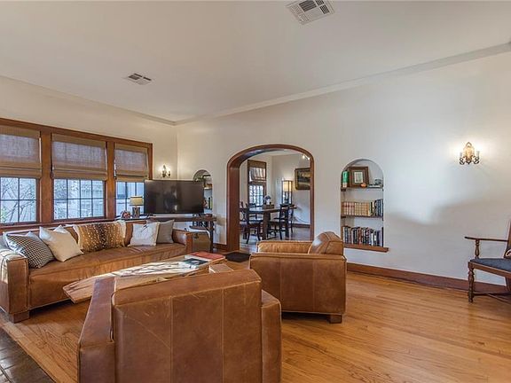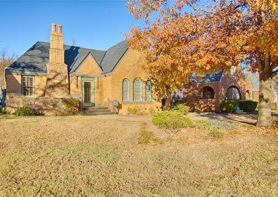 Gorgeous English Tudor home located in historic Miller Boulevard Neighborhood. This beautiful 1928 built home has many of the original wood accents, wood floors, and crafted materials. 2020 House New Updates: roof, backyard underground/surface drainage system, kitchen sink & garbage disposal, and steel basement support beam. 2017 House Updates: kitchen & bathroom remodeled: new microwave, stove, dishwasher, and wine cooler; plus new heat & air units, and sewer lines replaced. Both bedrooms have walk in closets; master BR has two closets one which could easily be converted into a 2nd bathroom. Other unique features of this home: two separate living areas with fireplaces, original sconce lights, built-in cabinets, two dining areas, large clean basement, smart home security system, AT&T Cable Service, covered backyard patio, and new two-car garage with electricity. Just minutes from major highways, the Plaza District, Downtown OKC restaurants & entertainment. Schedule a showing today!