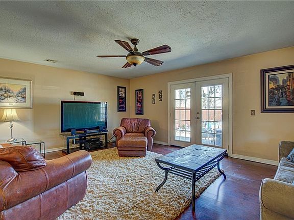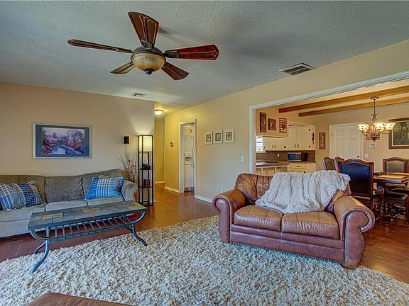 Location Location Location! Do you want to be close to shopping, entertainment and highways? This would be the location for you. This house boast a spacious living room with french doors out on to the backyard. The formal dining could be an additional living room and includes a fireplace and wood beams. The kitchen is equipped with a gas range and stove, plenty of counter top and cabinet space with a long island that includes room for barstools. There are hardwood floors throughout all the living spaces. The primary bedroom includes a full bathroom with a shower and two separate closets. The hall bathroom is spacious with an updated vanity, linen storage and tub/shower. The secondary bedrooms are both spacious and include ceiling fans. There are 2 inch faux wood blinds and built-in speakers throughout the house. The backyard has an open patio and spacious yard great for entertaining or the dogs to run around. Come make this house your home.