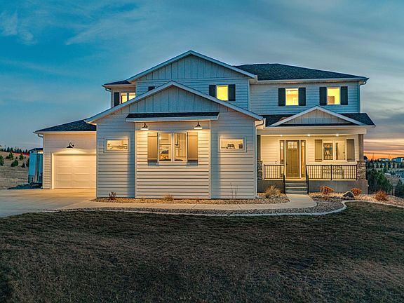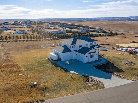 Welcome home to this custom-built home on a gorgeous 1.51 acre lot with beautiful views and gorgeous sunsets! This fabulous home filled with natural light offers almost 4,500 sf finished, 6 bedrooms, 4 baths, plus an office! You will be welcomed by the grand foyer opening to the main floor with 10' ceilings, office with custom barn doors, and a great room with custom gas fireplace. The custom kitchen is a chef's dream with quartz countertops, gas cooktop, double ovens, and walk-in pantry. You will love the mud room/drop zone off of the garage with built-in cubbies plus a 3/4 bath. Step upstairs and you will find 4 bedrooms on one level! There is a loft with cozy reading nook with built-in reading bench. The MASTER SUITE has a huge walk-in closet and MASTER BATH with custom-tiled shower, soaker tub, double sinks, and quartz countertops. The 3 additional bedrooms on the upper level also have walk-in closets and there is a full guest bath with separate sink area with double sinks! The oversized laundry has tiled floors, sink, and tons of storage. Step downstairs to the WALKOUT basement and you will find 2 more large bedrooms, another full bath, and a large family room plumbed for future wet bar! The mechanical room hosts an energy-efficient furnace and extra storage. NEED PARKING SPACE? The oversized 4+ stall, 1,504 sf attached garage is heated and has double floor drains and hot/cold water. The gorgeous yard is landscaped with firepit area, garden area, playset area. The lower patio is plumbed for a future hot tub and a gas line is stubbed in for a future firepit or your grill. The front porch and rear deck are also maintenance-free! The 13-zone sprinkler system makes watering a breeze! Call a Realtor for a showing and to obtain a copy of Property Features and Details packet.