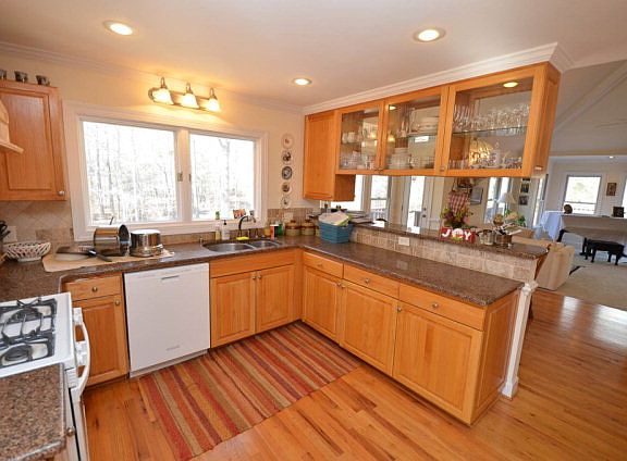 Peaceful private setting at the very end of Springwood Drive. 9' smooth ceilings. Master Suite with tiled shower, garden tub, double vanities. Master Bedroom opens to a huge screened porch overlooking the land. Airy great room with windows overlooking the yard. Wood burning fireplace. Built-in BBQ on the deck. Second Living Rm in basement. Private office/4th bedroom with access to exterior.