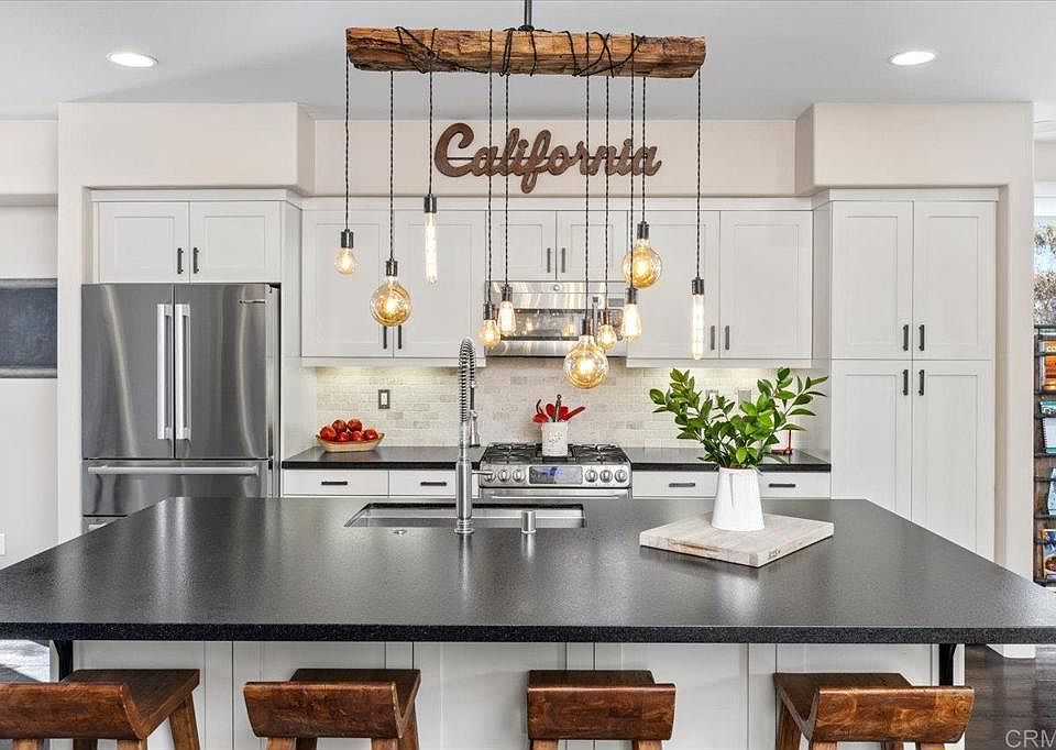 Live the Luxury Coastal Lifestyle in the Heart of Carlsbad Village! Welcome to your dream retreat on State Street, where modern sophistication meets laid-back coastal charm. With over 2,100 square feet of beautifully designed interior space and an expansive, private rooftop deck, this swanky coastal condo places you within steps of the lagoon, beach, boutique shops, and the vibrant dining scenes of both downtown Carlsbad and South Oceanside. Natural light floods every level of this three-story end unit, highlighting custom finishes, rich wood floors, high ceilings, and an effortless flow throughout. Enter through the private courtyard or your oversized two-car garage into a versatile first-floor flex space -perfect for a living area, guest suite, or home office. The second floor showcases the heart of the home with a stunning chef’s kitchen featuring a large island with leathered granite countertops, custom cabinetry, designer fixtures, and top-of-the-line stainless steel appliances. The open-concept dining and living areas are ideal for entertaining or relaxing, complemented by two balconies- one for morning coffee or evening BBQs and another charming French balcony right off the dining room. Upstairs, the third-floor hosts both bedrooms and laundry. The guest suite includes an ensuite bath, a walk-in closet, and its own French balcony. The primary suite is a serene sanctuary with west-facing windows framed by eucalyptus trees, a spacious walk-in closet plus two additional closets, and a spa-inspired bath with dual vanities and a spacious shower. Saving the best for the last…the final and fourth floor takes you to your private rooftop deck - the ultimate outdoor escape- offering panoramic ocean and city views, refreshing sea breezes, and unforgettable sunsets over the Village. Whether enjoying morning coffee, sunset dinners, or starlit gatherings, this is the space that will make you fall in love with coastal living for the first time or all over again. Additional features include dual A/C units, a whole-house water filtration system, EV charger, ample storage, custom window blinds, and ceiling fans throughout. Seagrove is just steps from the best that Carlsbad Village and South O have to offer -world-class dining, local boutiques, beaches, train station and coastal trails -this home blends luxury, convenience, and the irresistible energy of seaside living. Your coastal dream home awaits.